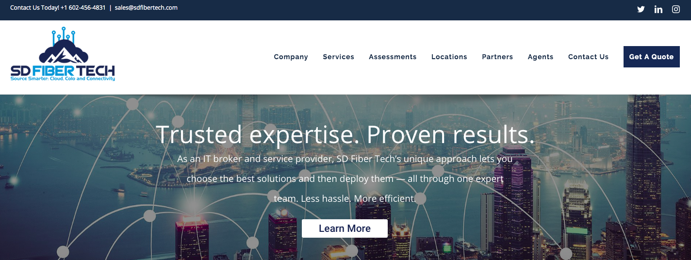 Have you visited SD Fiber Tech’s website lately? Based in Scottsdale, Arizona, SD Fiber Tech is a comprehensive telecom, cloud and colocation IT service provider. Its new website details the company’s services suite, which includes: