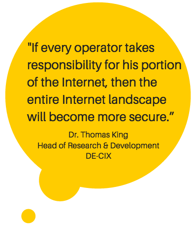 “The Internet can only function properly with the cooperation of many networks interconnecting smoothly,” states Dr. Thomas King, Head of Research & Development at DE-CIX. “And this principle is also true for security in this ecosystem: with this study, we want to initiate improvements in our industry. If every operator takes responsibility for his portion of the Internet, then the entire Internet landscape will become more secure.”