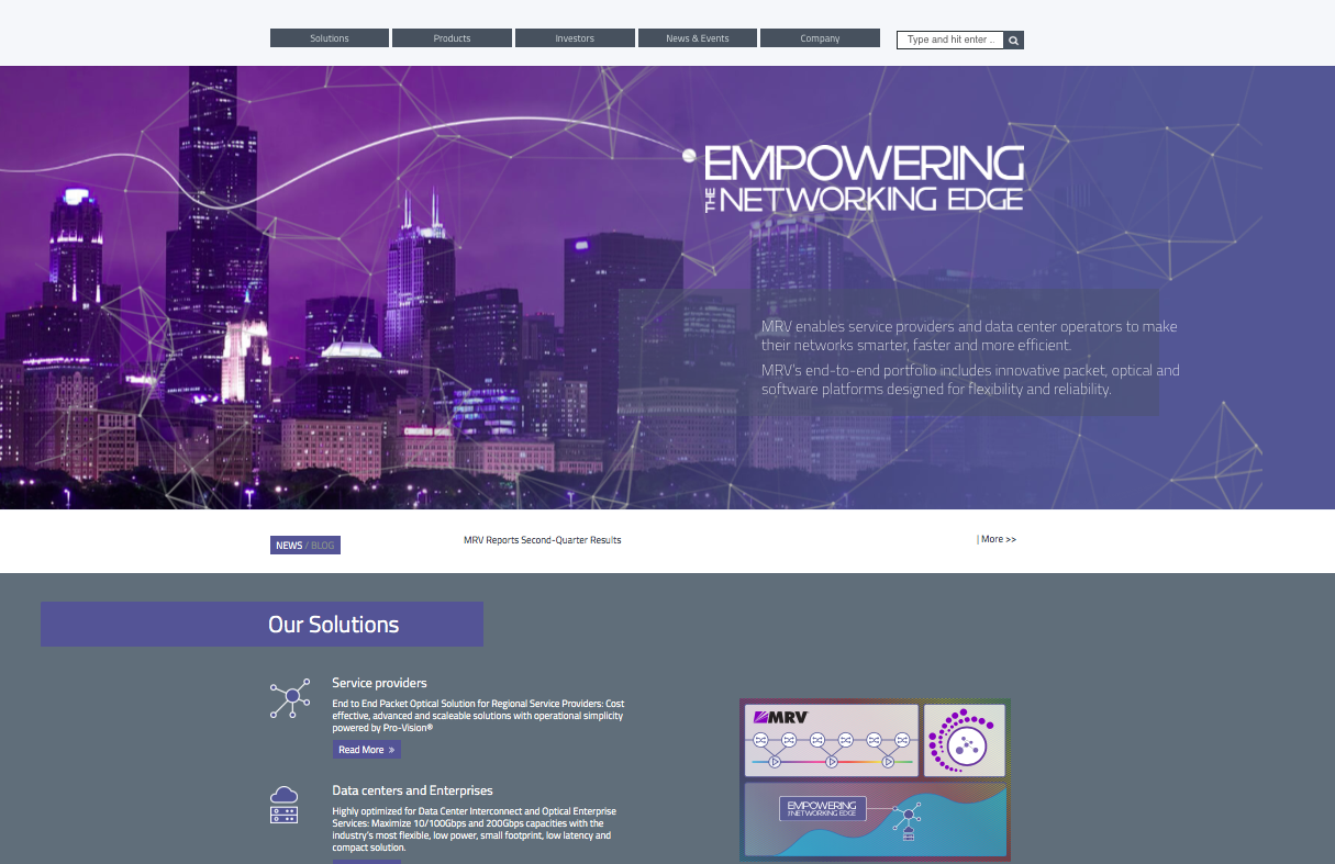 “MRV’s new website reflects the company’s ongoing strategy to focus on key target markets with corresponding, solution-centric metro packet and optical products and services,” stated Zeev Drear, Vice President of Strategic Marketing for MRV. “The new website was designed to improve the overall digital experience when delivering essential online information to our customers, partners and industry prospects.”