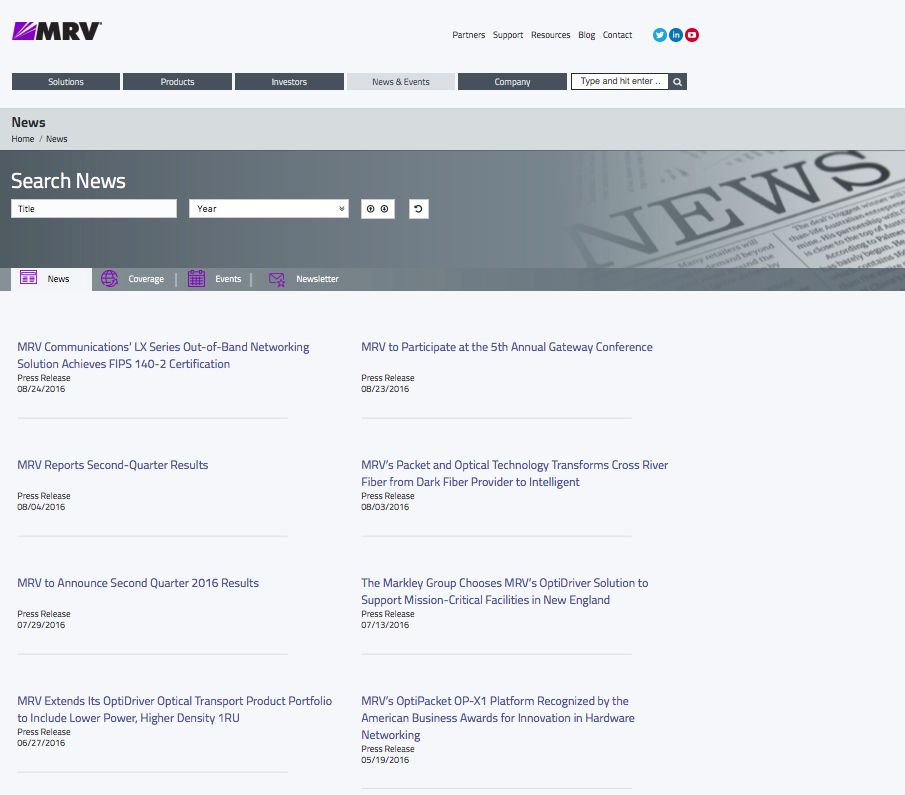 Visitors can be informed of industry and company news via MRV’s LightNews Blog. The blog contains thought leadership insights, breaking MRV news, featured products guides, newsletters, upcoming events and much more