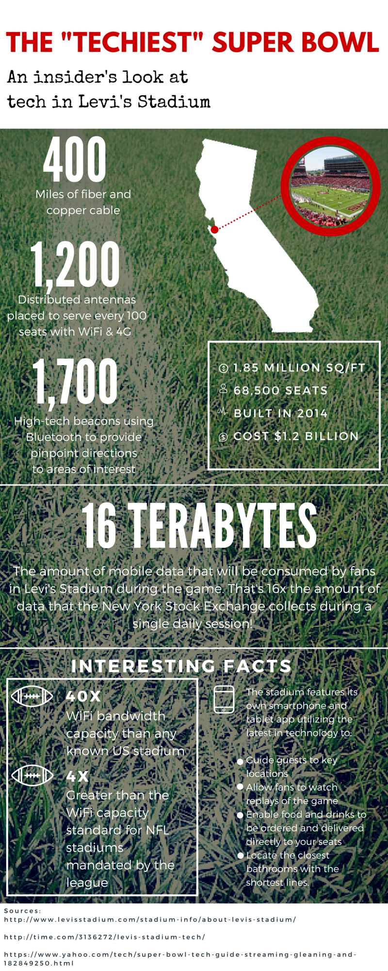This year’s event will take place in Levi’s Stadium, home of the San Francisco 49ers, in Santa Clara, California. Fittingly set against the backdrop of Silicon Valley, the smart facility is recognized as the most high-tech stadium in the world. So, what does it take to earn that distinction?
