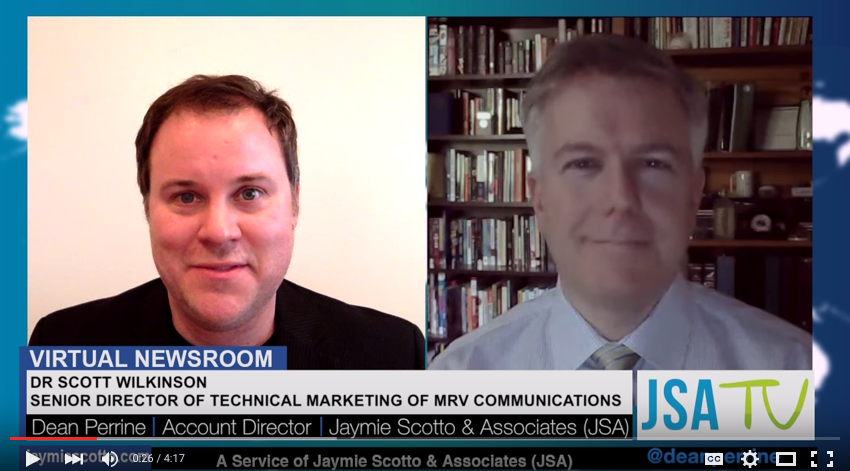 MRV COMMUNICATIONS FEATURED ON JSA TV - Dr. Scott Wilkinson, Senior Director of Technical Marketing at MRV Communications, recently sat down with JSA’s very own Dean Perrine to discuss MRV and its offerings. The conversation covers an array of topics and offers a glimpse into MRV, what it does, and what it hopes to do in the future. Watch interview here.