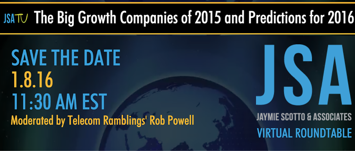 What better way to kick-off the new year? We invite you to join us for the next installment of the JSA TV CEO Virtual Roundtable series, entitled, ‘The Big Growth Companies of 2015 and Predictions for 2016′, to be webcasted live on Friday, January 8 at 11:30 AM ET. So plan to grab a morning cup of coffee, and hear from industry leader on what challenges they saw in 2015, what to look out for in 2016 and more. Reserve your Seat.